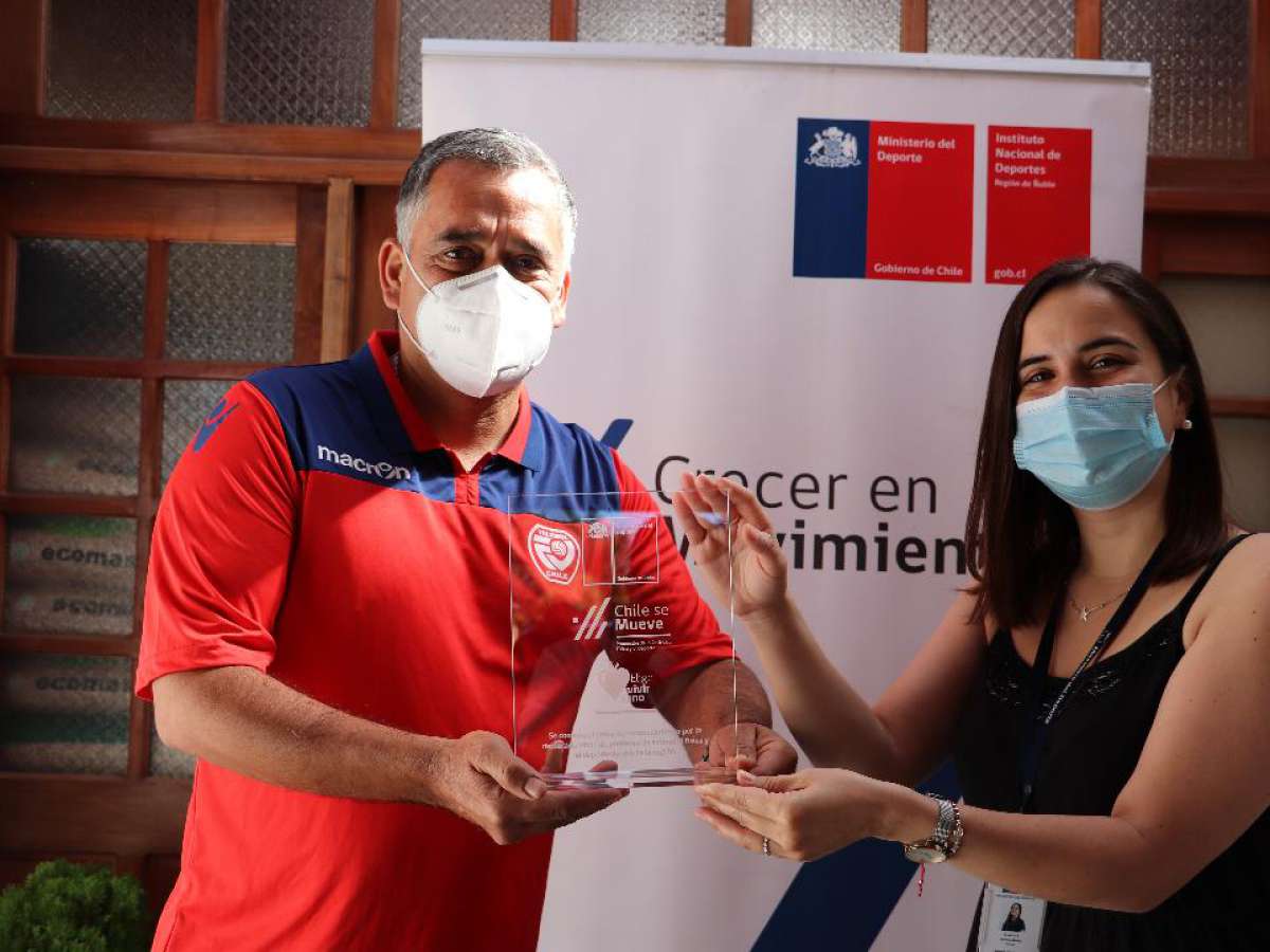 ‘A través de Jorge (Roa) queremos reconocer el trabajo de todos nuestros profesores por su ayuda en seguir fomentando la actividad física en tiempos de pandemia. Las redes sociales han sido una gran herramienta para continuar llegando a nuestros beneficiarios, lo que sería imposible sin el compromiso de todos ellos’, sostuvo la Seremi del Deporte, Javiera Muñoz, quien entregó personalmente una distinción a Roa.